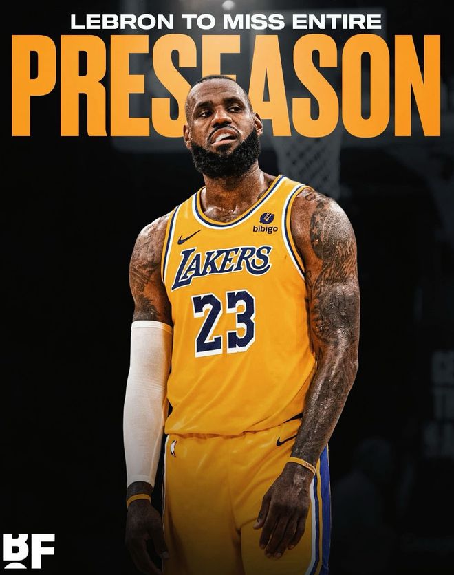 坏消息,勒布朗·詹姆斯因臀伤或缺席湖人季前赛全部比赛